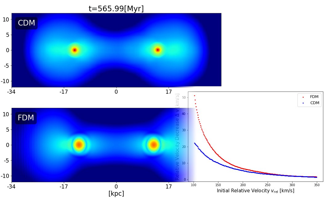 Recently, ΛCDM model still has some tension in small-scales(~kpc). Some alternatives are suggested to resolve this issue, and one of them is Fuzzy Dark Matter (FDM) model, consisting of bosonic ultra light dark matter(1e-22V/c^2) without self interacting. FDM halo is the solitonic core of Bose-Einstein Condensated state of FDM. There are mainly two dynamical properties of FDM dramatically different from CDM: First, dynamical friction of FDM is much weaker than that of CDM. This could explain the falling time of the Fornax dwarf spheroidal galaxy, which is longer than the prediction by CDM. Second, unstable FDM states stabilize with mass loss due to the excessive kinetic energy, which is called Gravitational Cooling. We are interested in how these two properties are significant for head-on collision, binary black hole/stellar dynamics inside halo, which is expected to solve 1)Final-Parsec problem (the observed merger time scale of supermassive black hole is shorter than the prediction by CDM) and 2) Angular Momentum Catastrophe (the observed angular momenta of disk galaxies are faster than the prediction by CDM).